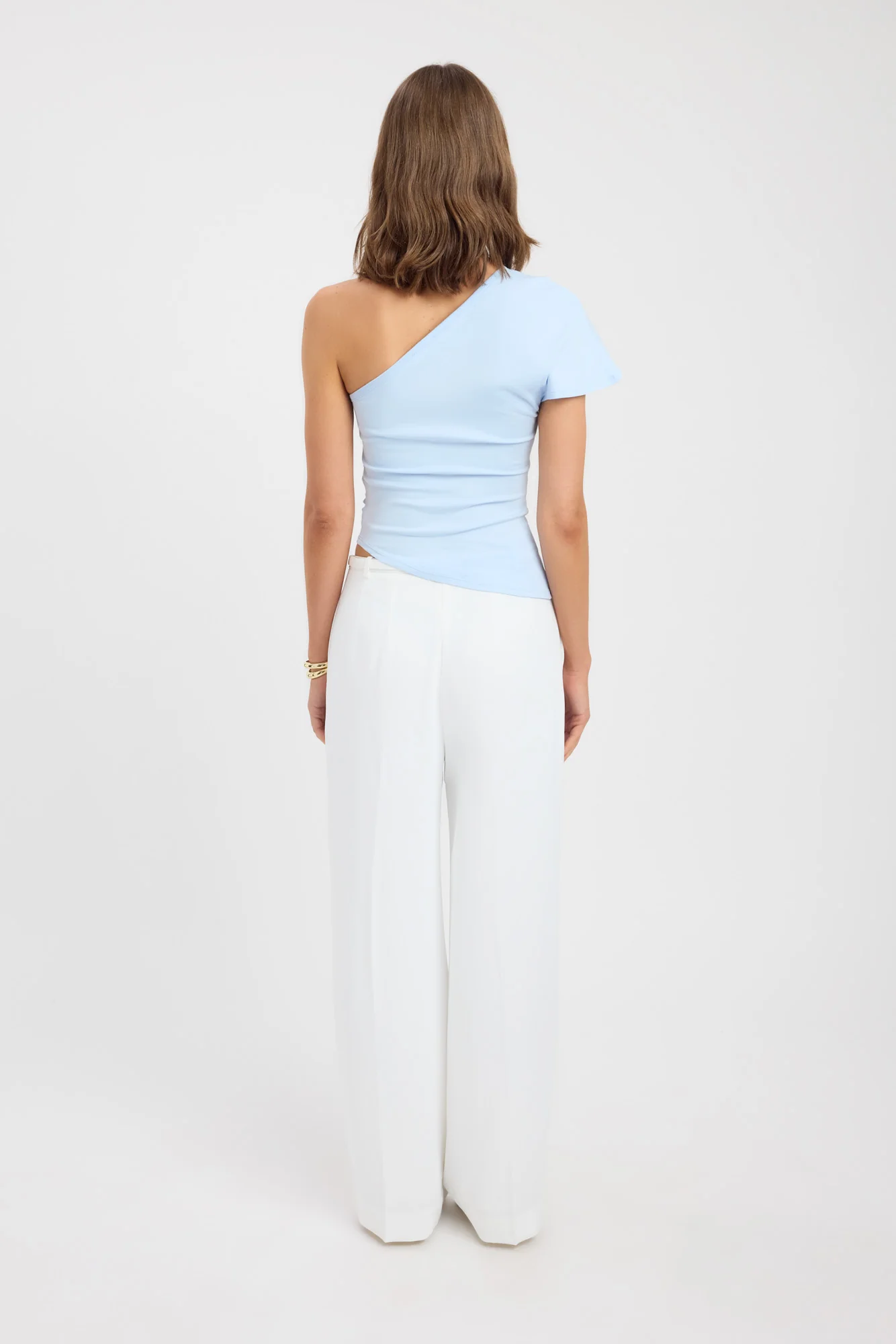 Striking a balance between ease and modern allure, the Avery Top brings a sculpted yet relaxed feel to any wardrobe. Designed with an asymmetric neckline that drapes cleanly across the collarbone, it features a soft flutter sleeve on one side and a sleeveless finish on the other for a dynamic, directional look. Gentle rouching along the waist creates flattering definition and enhances the top’s fluid silhouette. Crafted from a smooth, stretch Pima fabrication.
