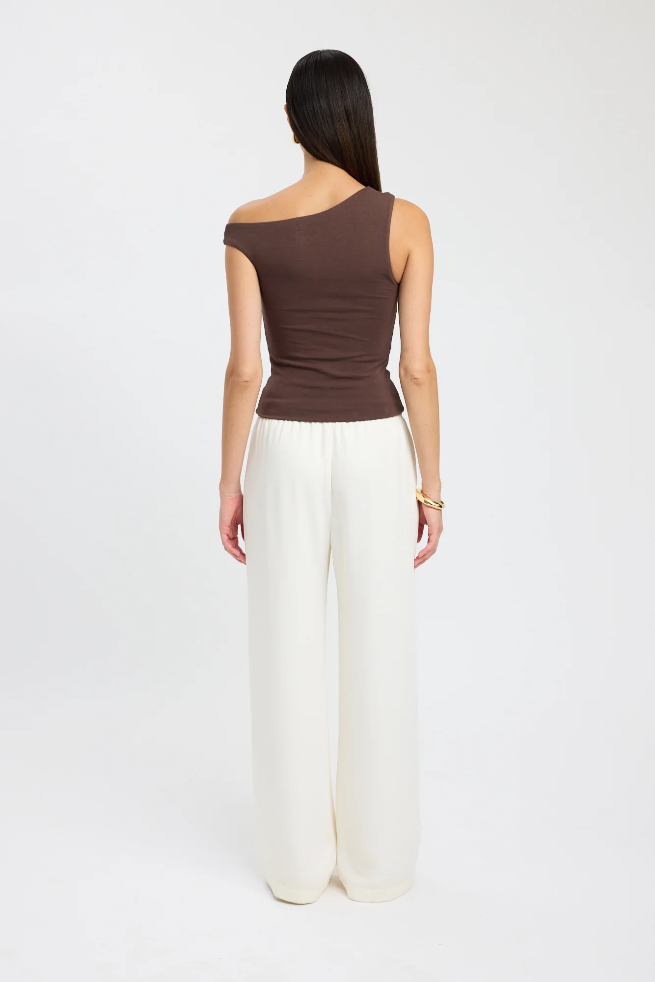 The Greta Top in the brown colourway will redefine your top edit. Crafted from our soft cotton Pima fabrication, the Greta Top features an off-the-shoulder asymmetric neckline and twisted strap. The sleeveless style boasts a slashed neckline and ruched detailing to form a flattering silhouette.